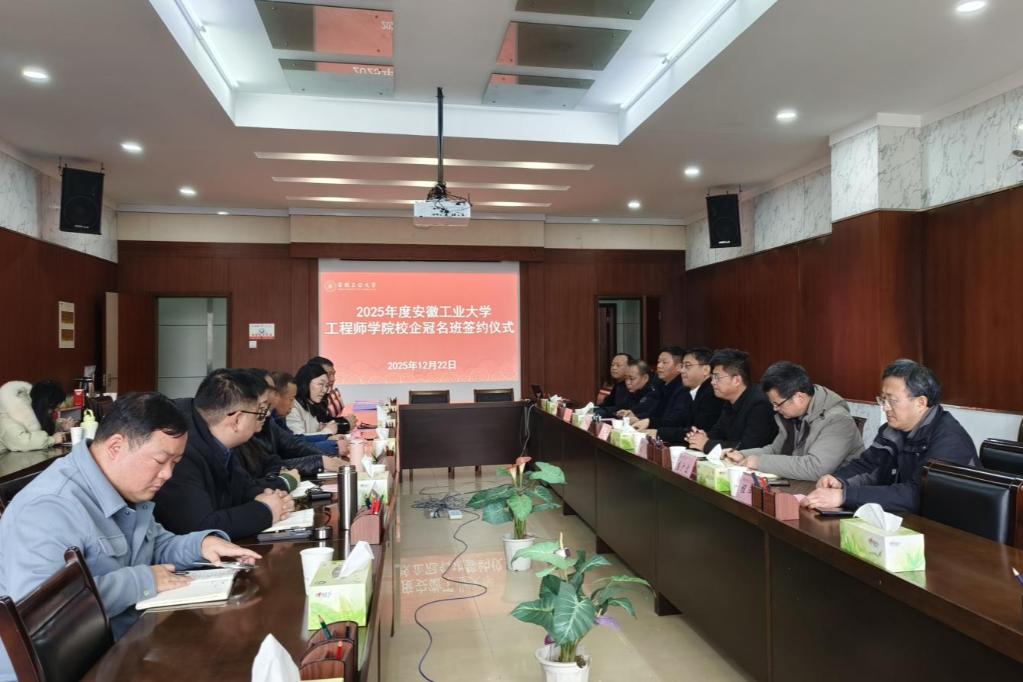 12月22日下午,我校工程师学院与顺博合金安徽有限公司、安徽元琛环保科技股份有限公司、中钢矿院(马鞍山)智能应急科技有限公司校企合作冠名班签约仪式在佳山校区会议中心举行。副校长郑啸出席,马鞍山市人力资源和社会保障局二级调研员宋冰,四级调研员、专技科科长张文林,企业代表以及相关学院负责人参加。